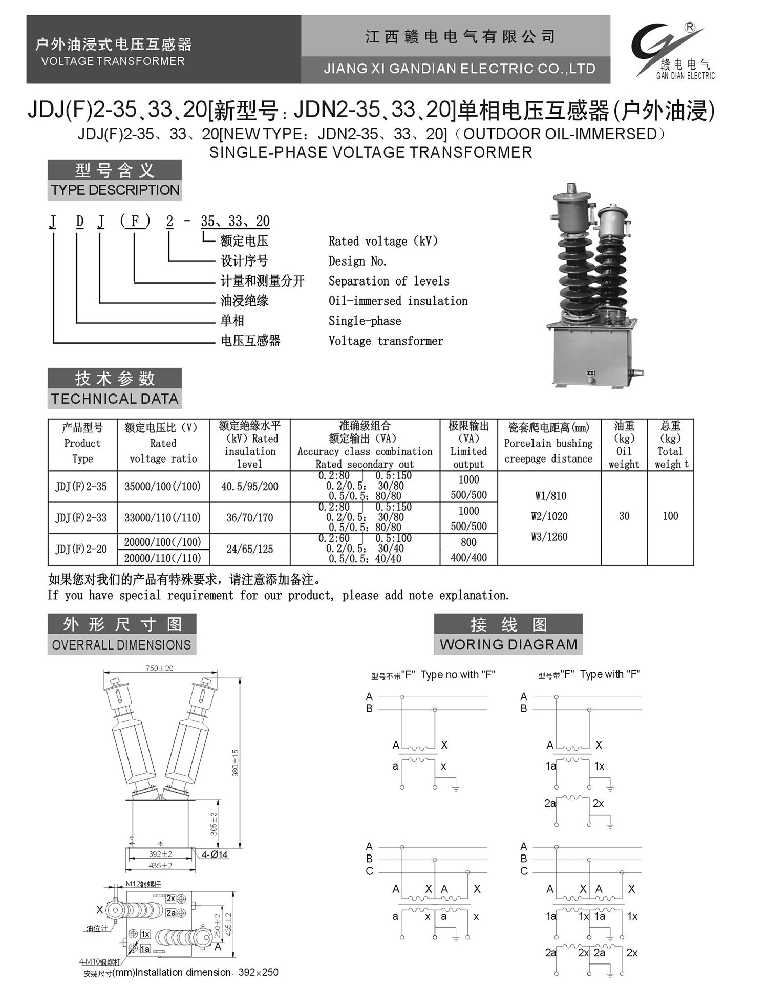 JDJ(F)2-35、33、20[新型号:JDN2-35、33、20]单相电压互感器(户外油浸)