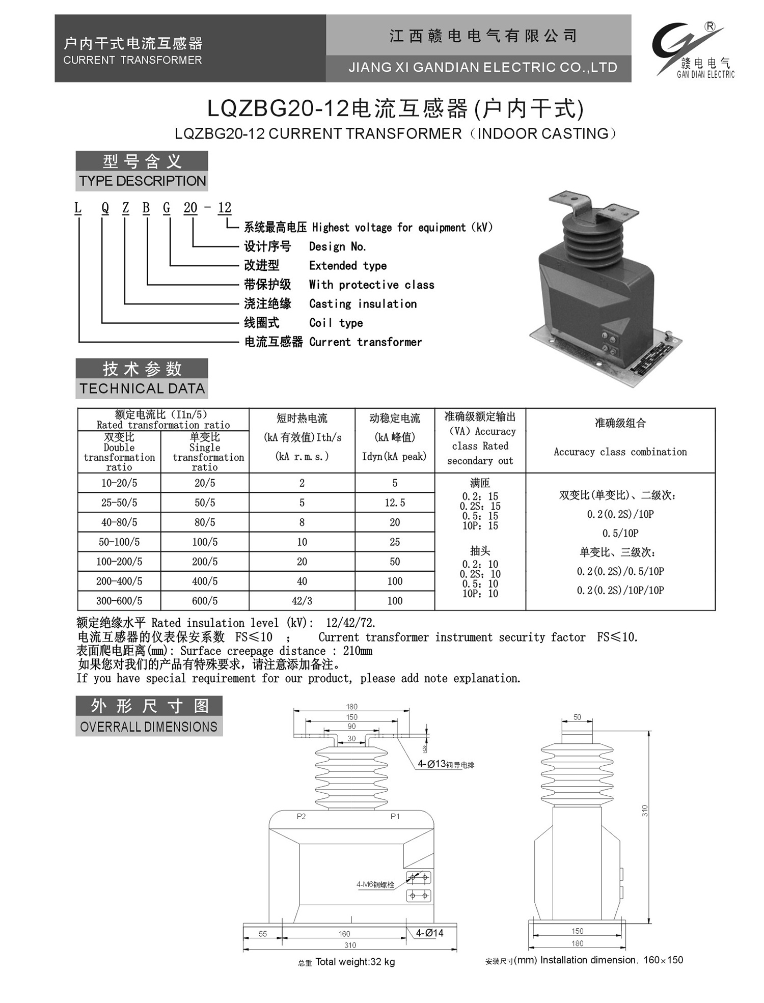 LQZBG20-12 电流互感器(户内干式)