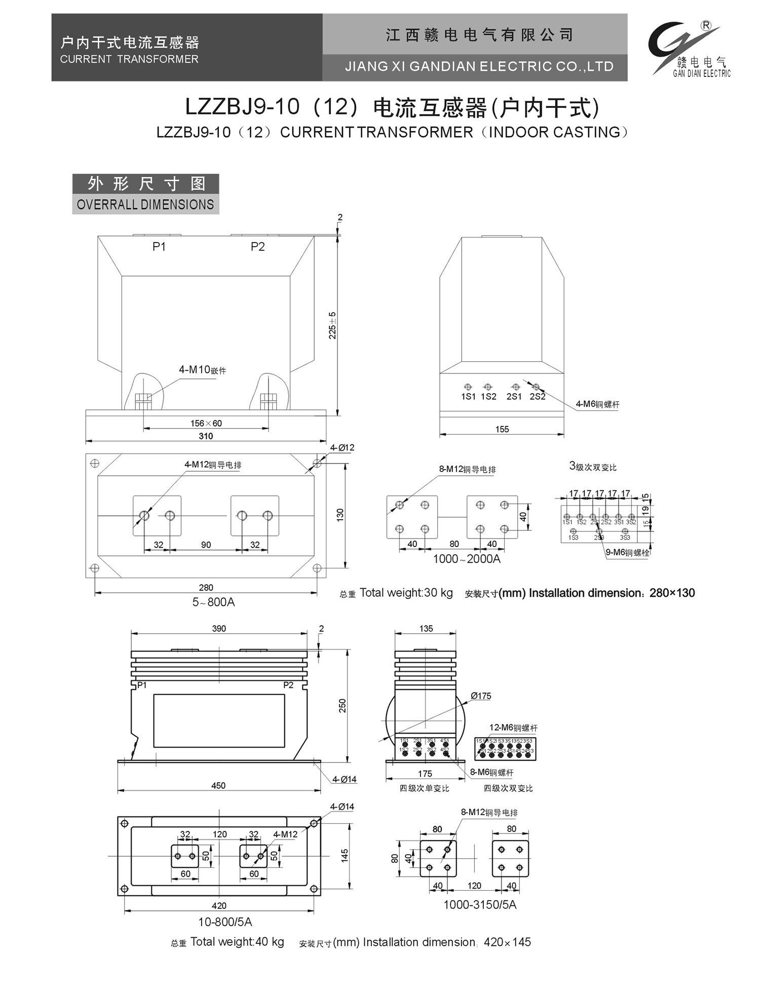 LZZBJ9-10 (12) 电流互感器(户内干式)