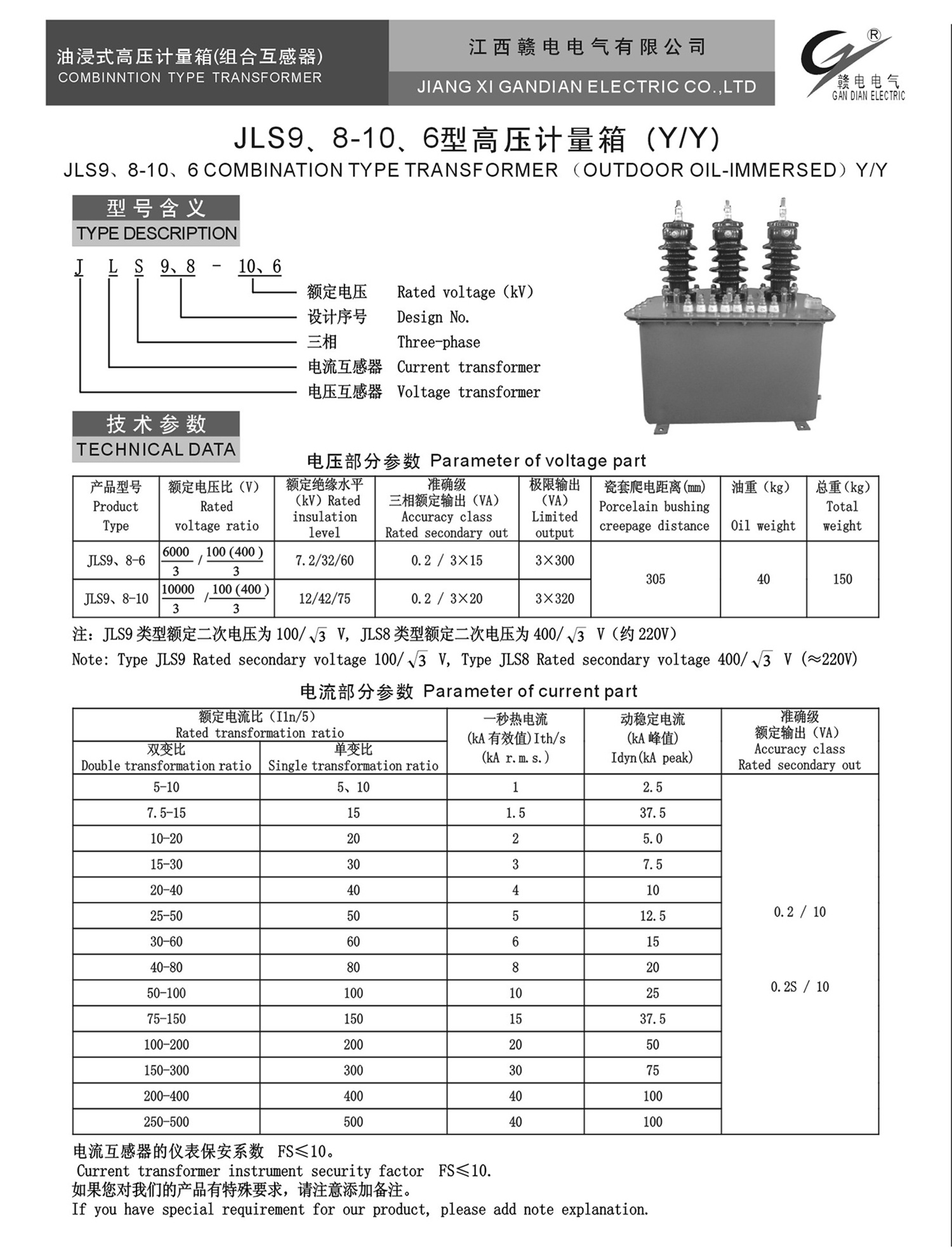 JLS9、8-10、6 型高压计量箱 (Y/Y)